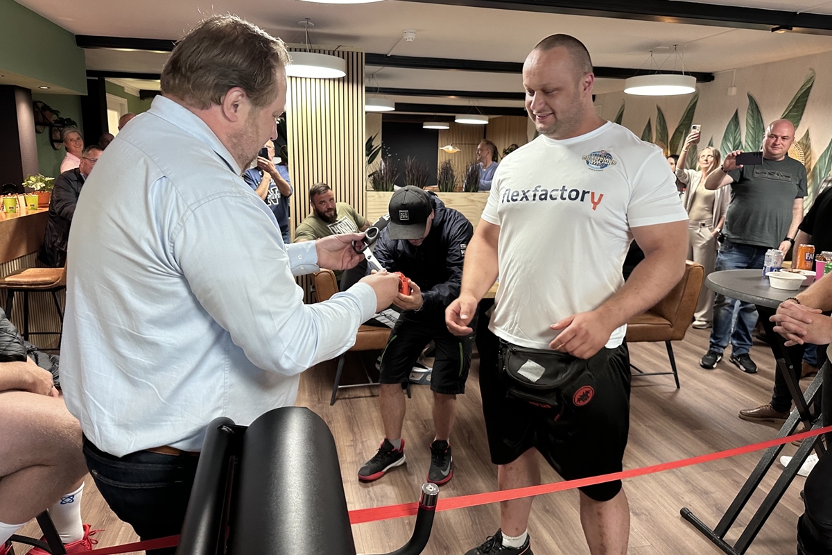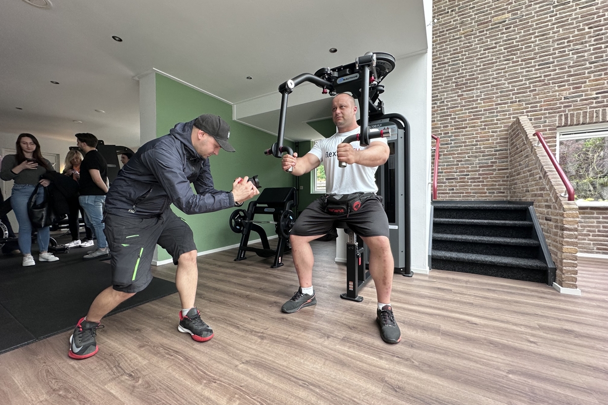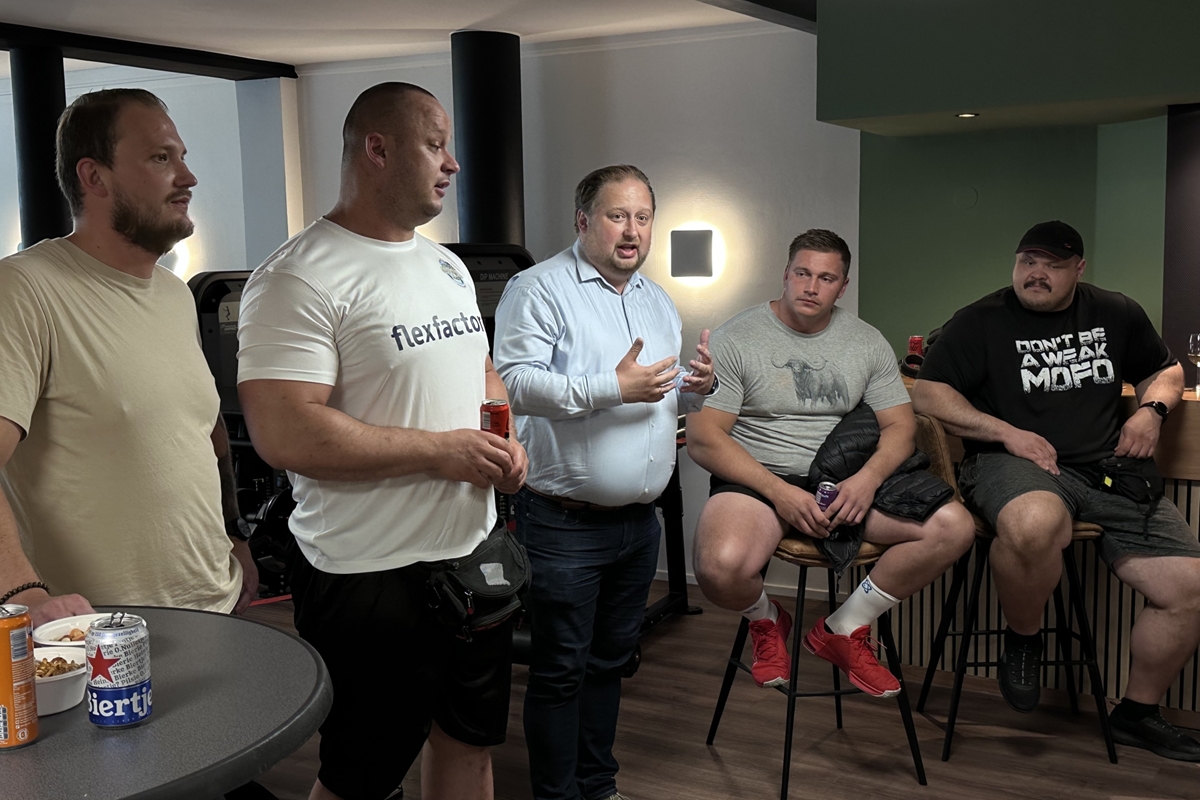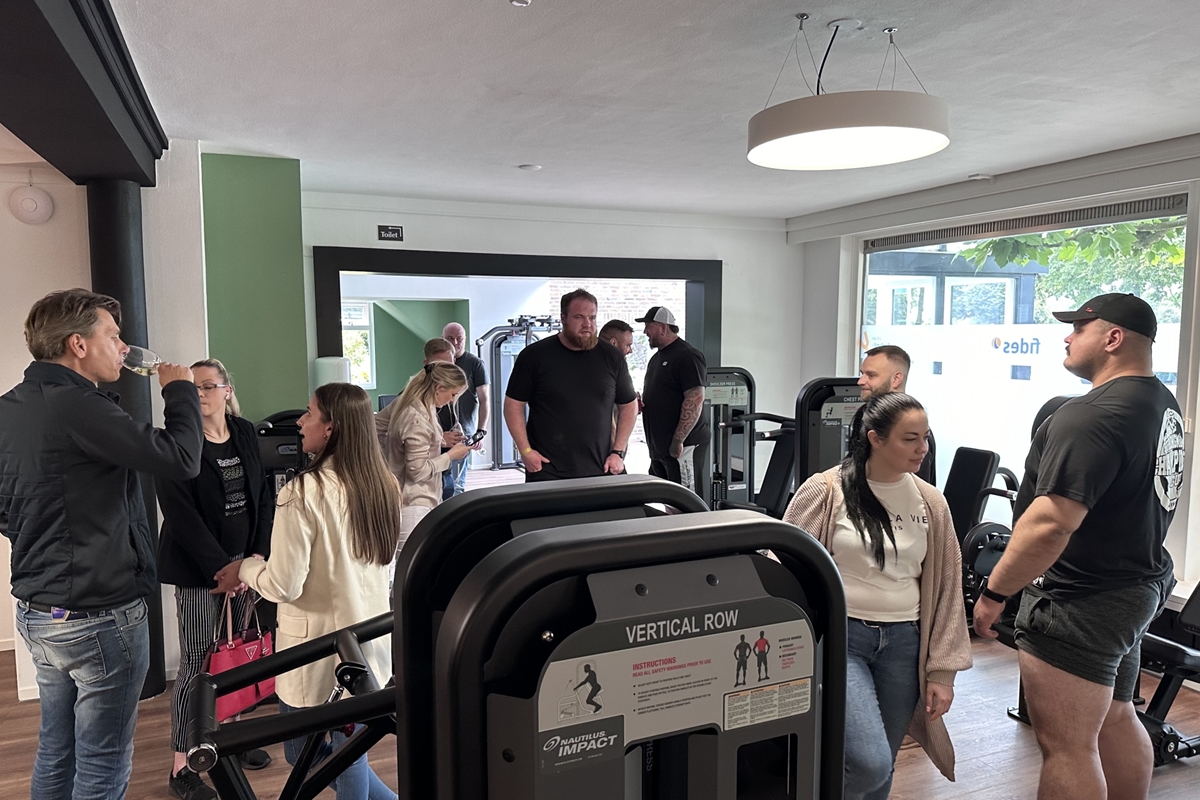 Nadat het lint was doorgeknipt, konden de sterke mannen los in de sportschool en op de foto met bewoners en andere belangstellenden. Onder het genot van een hapje en een drankje werd nog lang nagepraat.